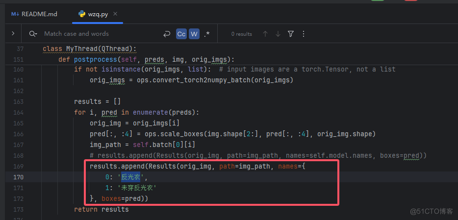 - 【class MyThread】,它负责进行对测试资源进行推理,画框等操作,也就是检测的主要逻辑代码,检测完毕后通过信号槽发送数据给【class MainWindow】类显示到窗口。