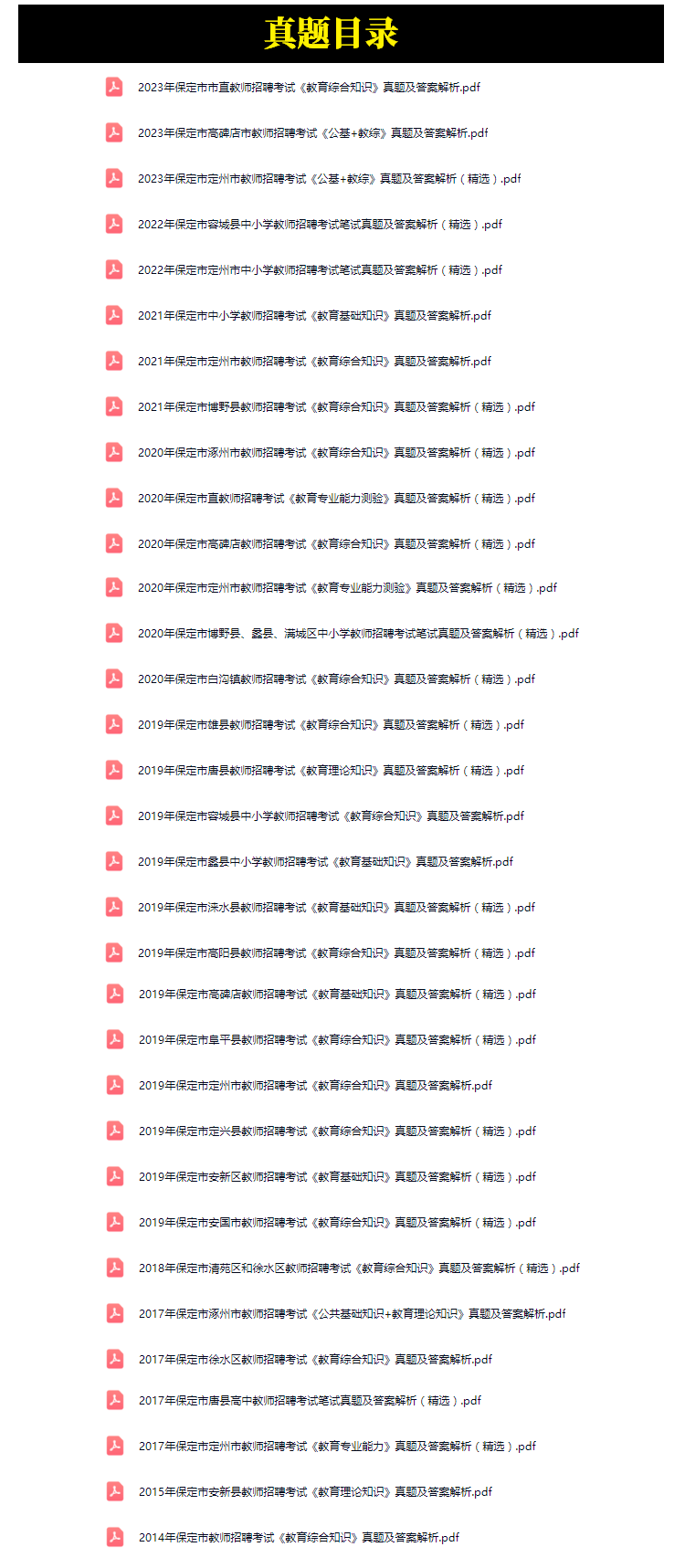 2014年-2023年保定市中小学教师招聘考试笔试真题35套