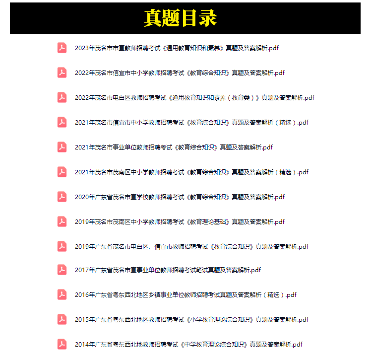 2014年-2023年茂名市中小学教师招聘考试笔试真题13套