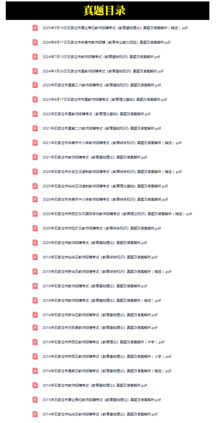 2014年-2025年石家庄市中小学教师招聘考试笔试真题29套