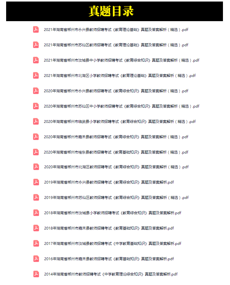 2014年-2021年郴州市中小学教师招聘考试笔试真题17套
