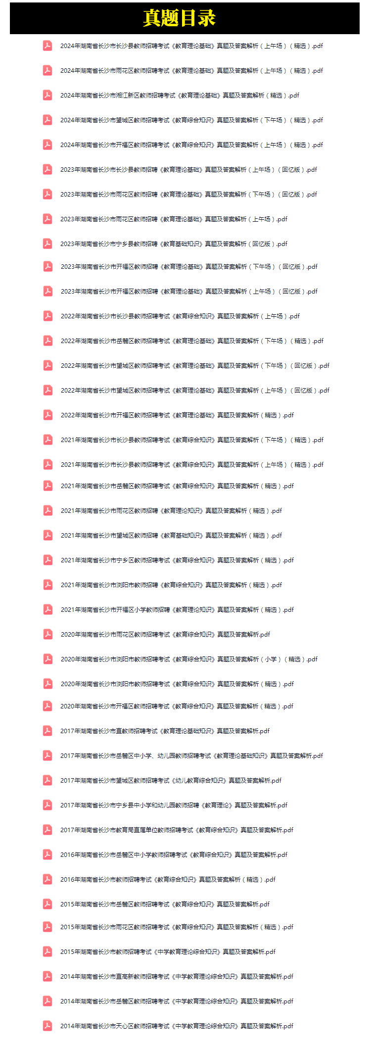 2014年-2024年长沙市中小学教师招聘考试笔试真题42套