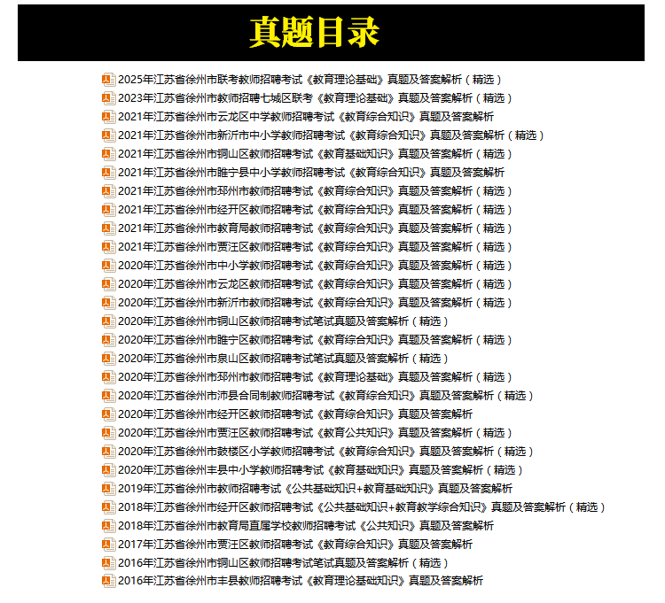 2016年-2025年徐州市中小学教师招聘考试笔试真题28套