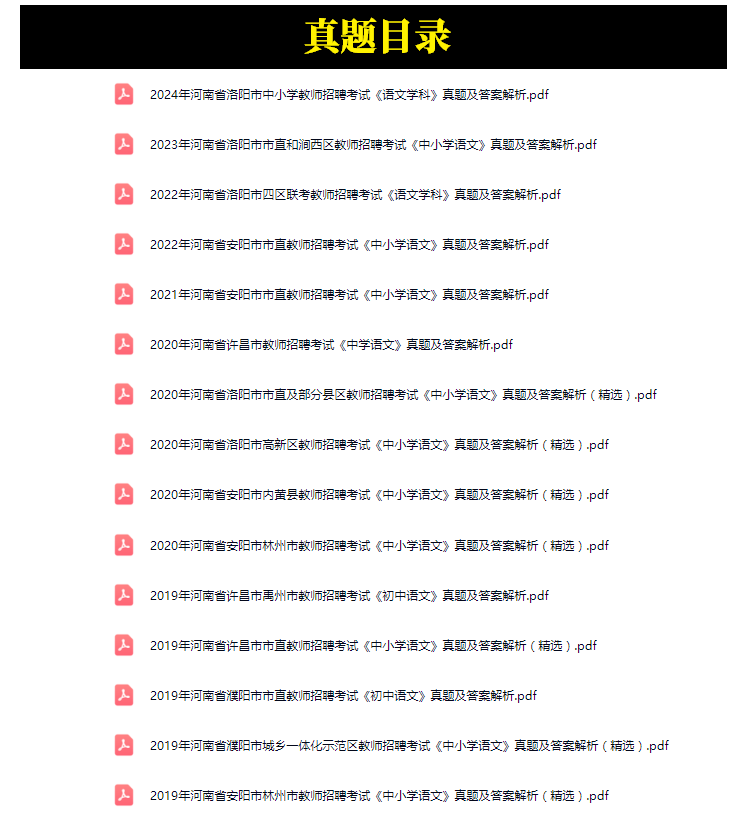 2019年-2024年河南省中小学教师招聘考试语文学科笔试真题15套