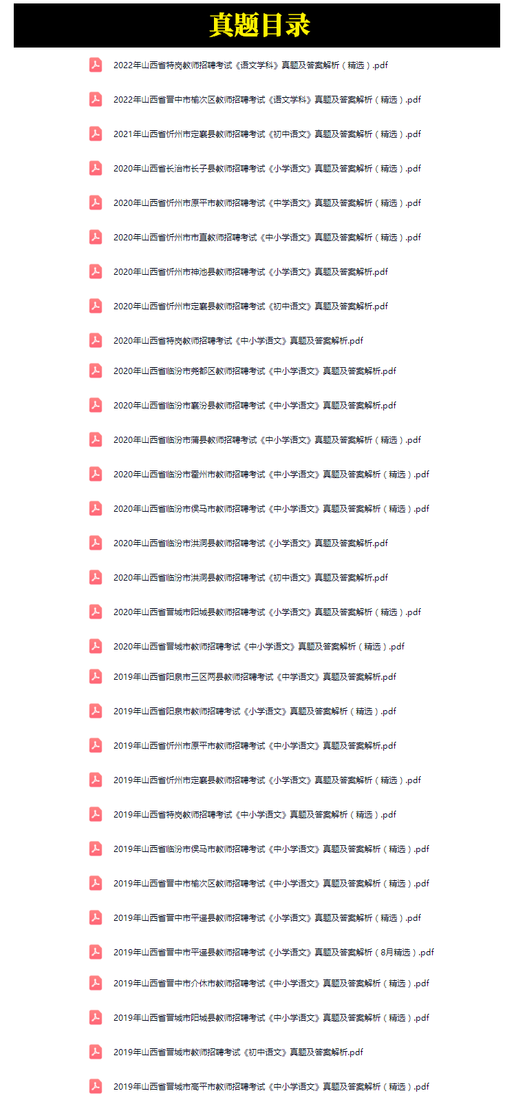2019年-2022年山西省中小学教师招聘考试语文学科笔试真题31套