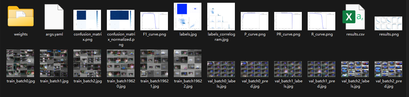 模型训练结束后,我们可在runs/det/目录下可以得到一个最新且最佳的训练结果模型best.pt文件,在runs/det/train/weights目录下。我们可使用该文件进行后续的推理检测。