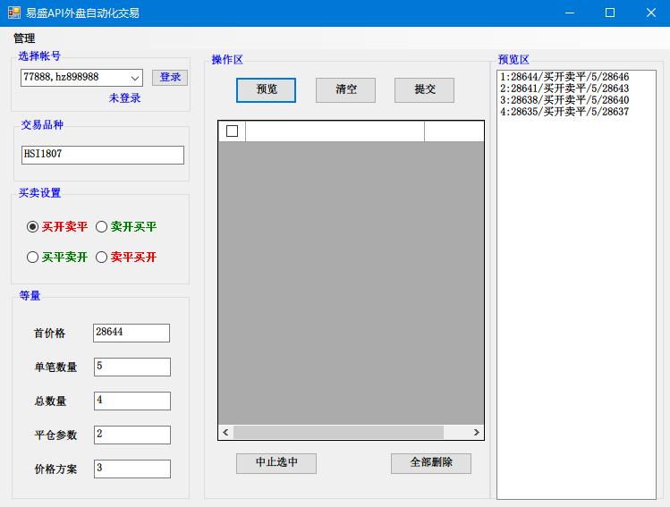 通過買或賣2選1+5個參數的設置,多次疊加使用,可實現任何人工交易計劃,轉變為自動化交易