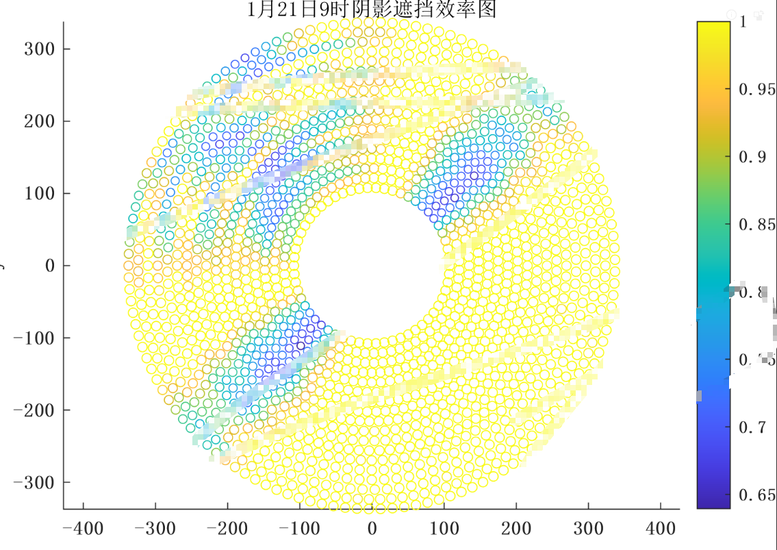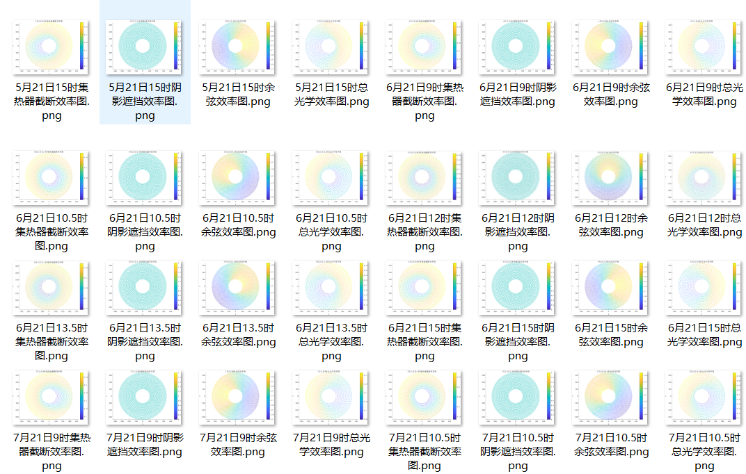 问题1 若将吸收塔建于该圆形定日镜场中心,定日镜尺寸均为 6 m×6 m,安装高度均为4 m,且给定所有定日镜中心的位置(以下简称为定日镜位置,相关数据见附件),请计算该定日镜场的年平均光学效率、年平均输出热功率,以及单位镜面面积年平均输出热功率(光学效