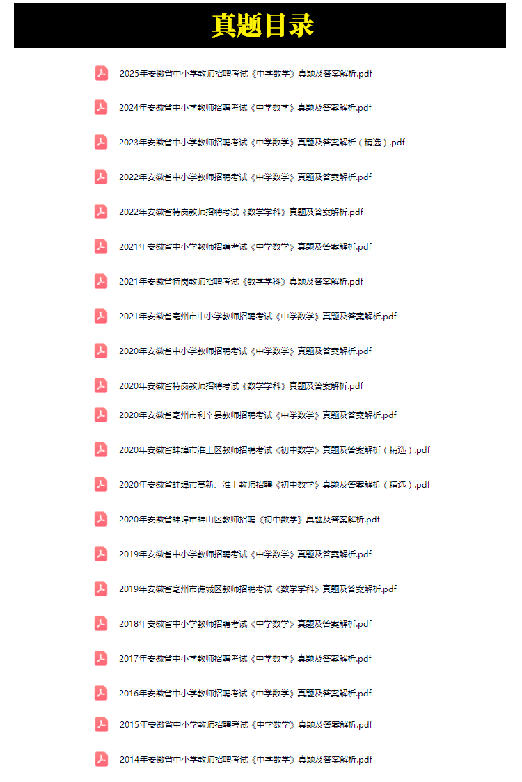 2014年-2025年安徽省教师招聘考试中学数学学科专业知识笔试真题21套