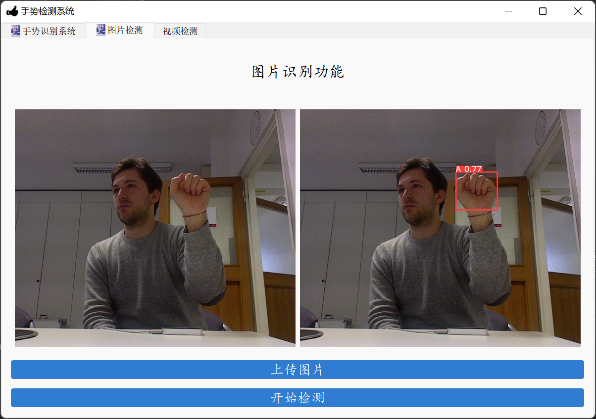 (1)选择图片检测:用户可以选择单张图片进行目标检测,系统自动识别图片中的举手行为。