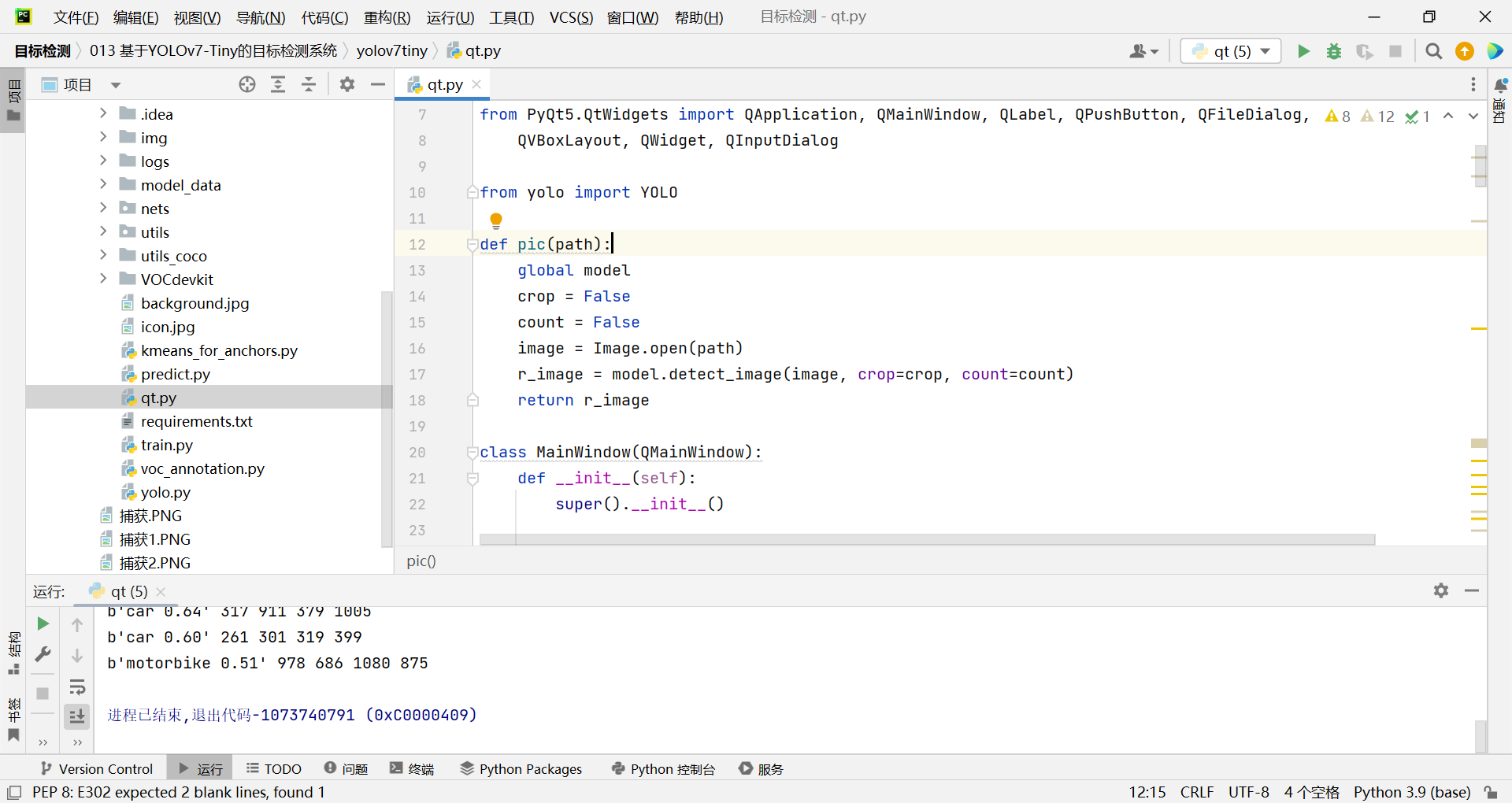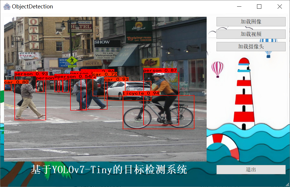 PyThon实现的目标检测系统代码,基于深度学习框架PyTorch编程,采用 YOLOv7-Tiny检测网络作为核心模型,可用于对车辆、行人、飞机、轮船、猫、狗等几十种类别进行检测和识别,并在QT界面中将结果可视化。代码可用于训练、验证和评估模型。在QT界面中,用户可以选择加载图像、摄像头和视频流三种模式作为模型输入。对模型训练完成后,用户可以根据自己数据集完成权重替换并可视化结果。用户还可以根据自己的需求,去更改QT界面的背景、按钮等,界面的操作和相关的代码都有详细的注释。