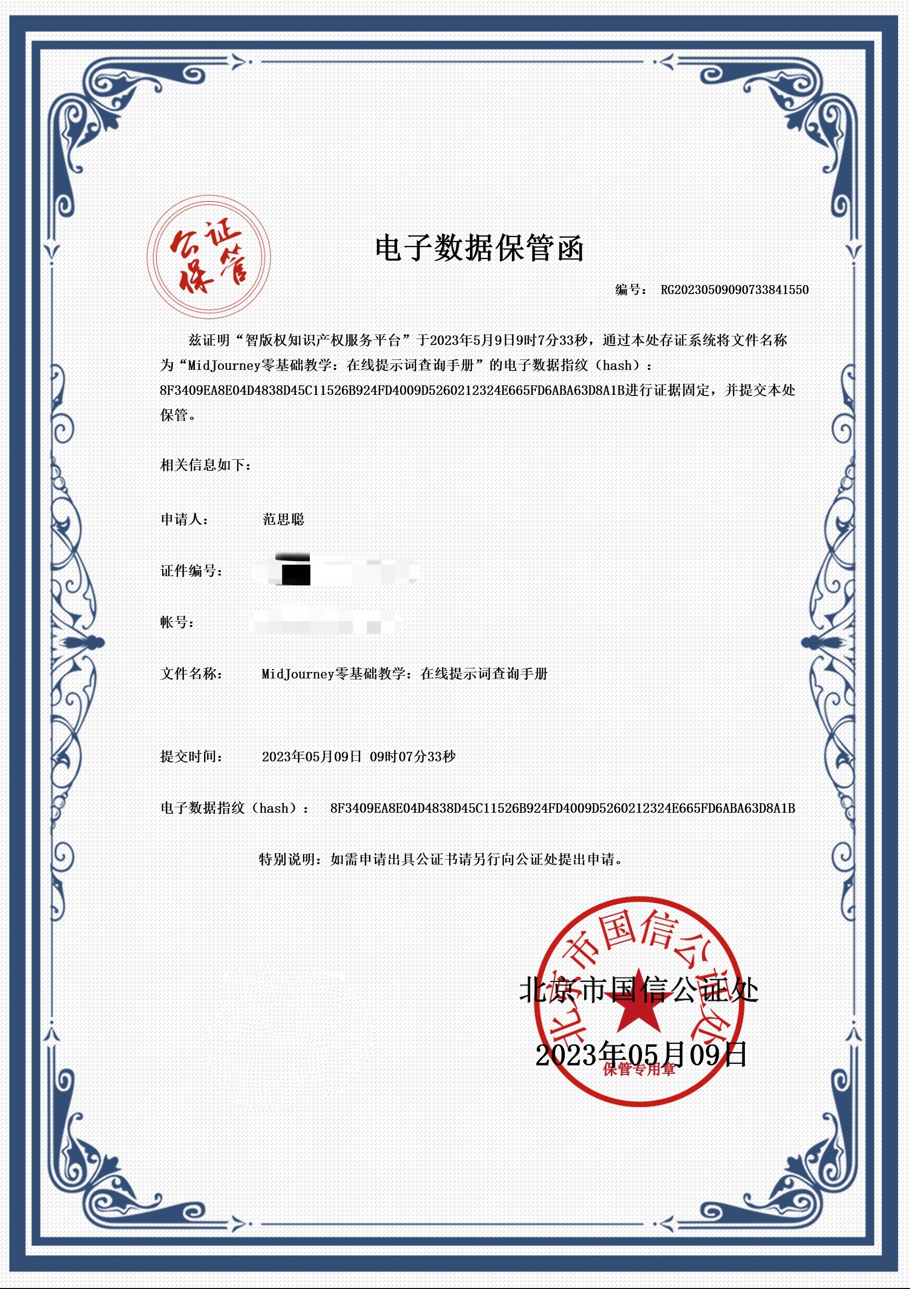 已申请所有版权认证(发表权、署名权、修改权、作品保护完整权、复制权、发行权、出租权、展览权、表演权、放映权、广播权、信息网络传播权、摄制权、改编权、翻译权、汇编权、其他权力)中,以及在北京国信公证处进行了数据的公证。