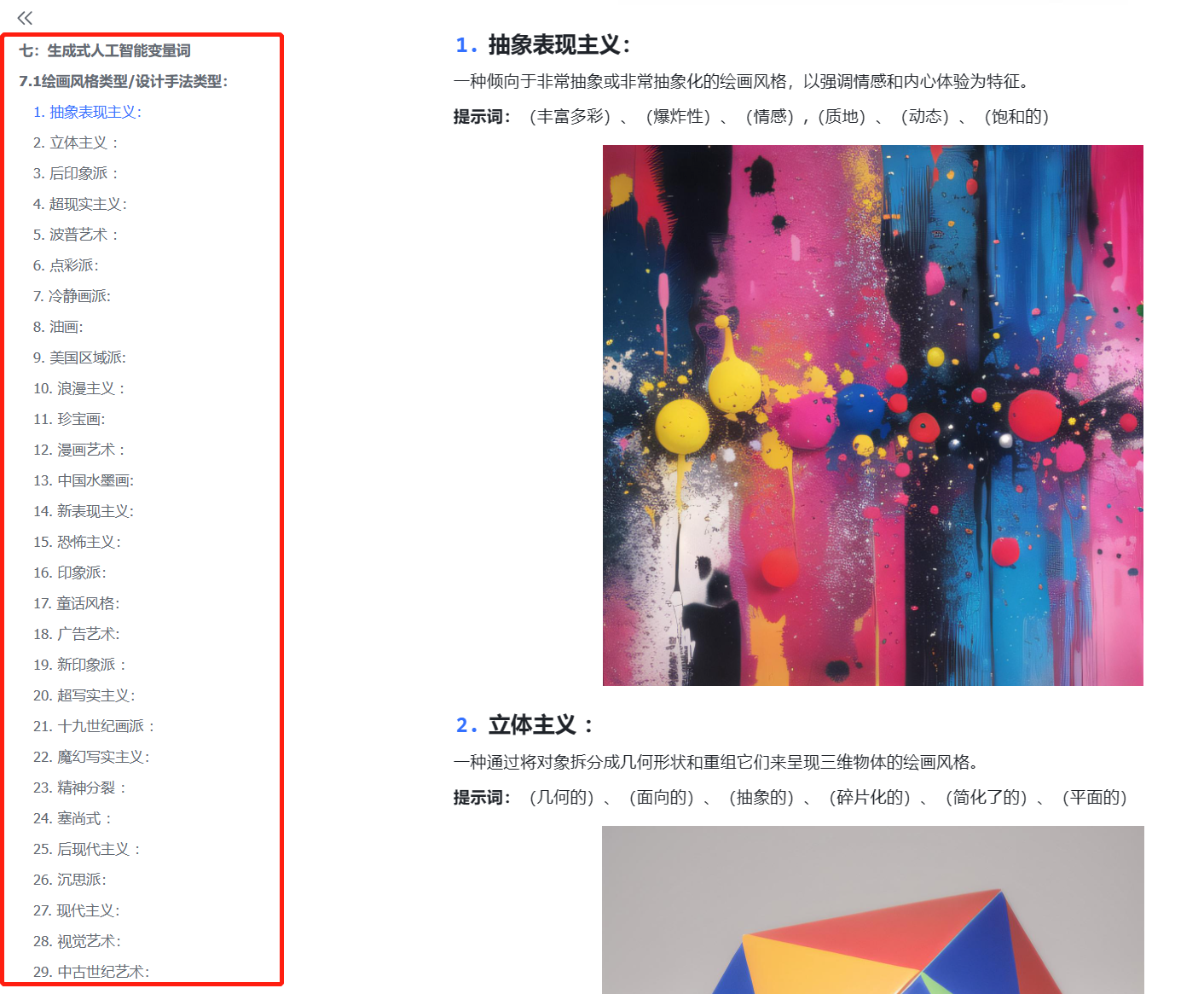一共222个大家可能用到的绘画风格,每个都配有图片。(花了大量时间,原创版权,请勿复制和抄袭,抄袭必究)作图时,请直接选择并代入到公式中即可。