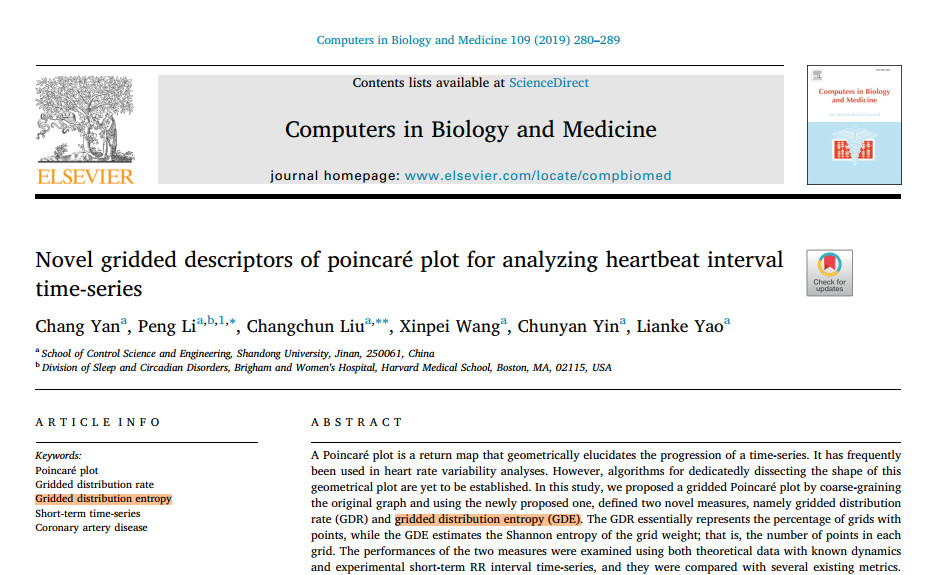 C. Yan, P. Li, C. Liu, X. Wang, C. Yin, and L. Yao, “Novel gridded descriptors of poincaré plot for analyzing heartbeat interval time-series,” Computers in Biology and Medicine, vol. 109, pp. 280–289, Jun. 2019, doi: 10.1016/j.compbiomed.2019.04.015.