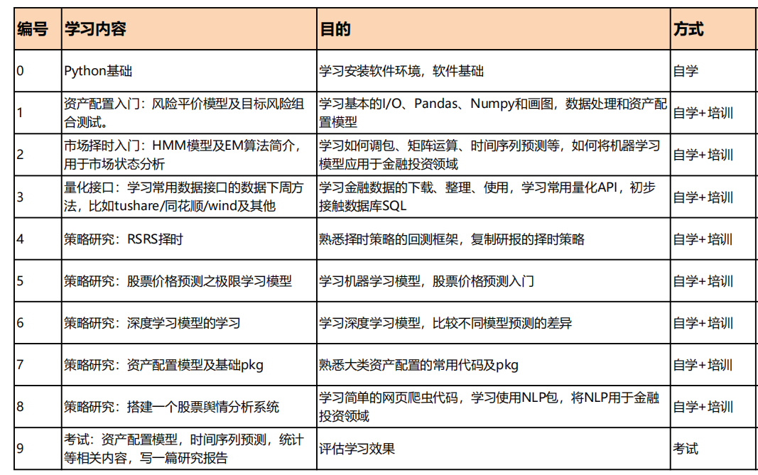 (4)适合人群:想进入资产配置、研究所(金融工程)等机构做投资研究实习的学生;想学习金融领域使用Python提高工作效率的从业者;想了解金融量化研究的小白;其他对内容感兴趣的小伙伴。