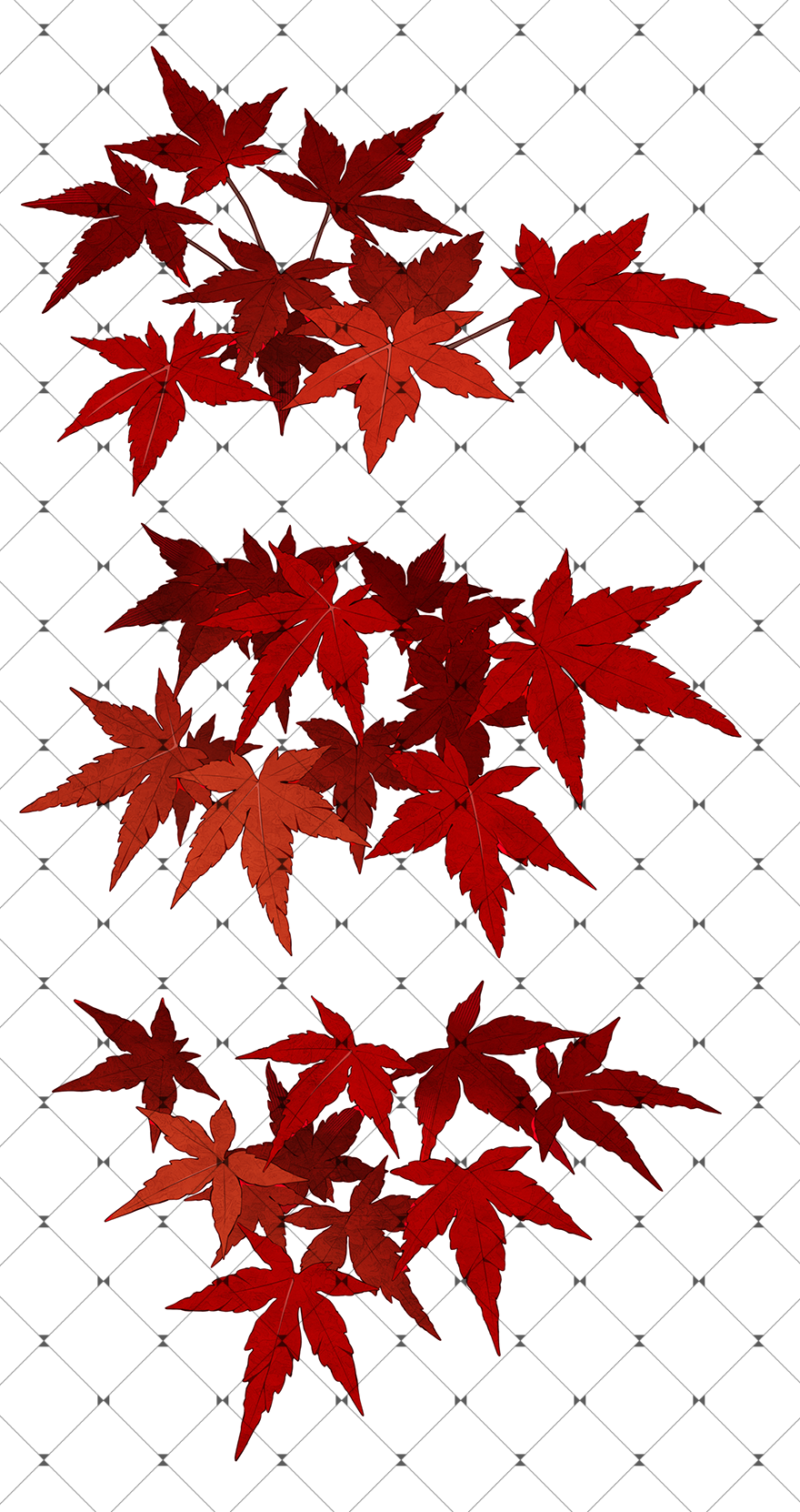 妖娆鲜红的橙红枫叶笔刷,内含3款不同姿态的枫叶图样,可根据需要自行调整使用。