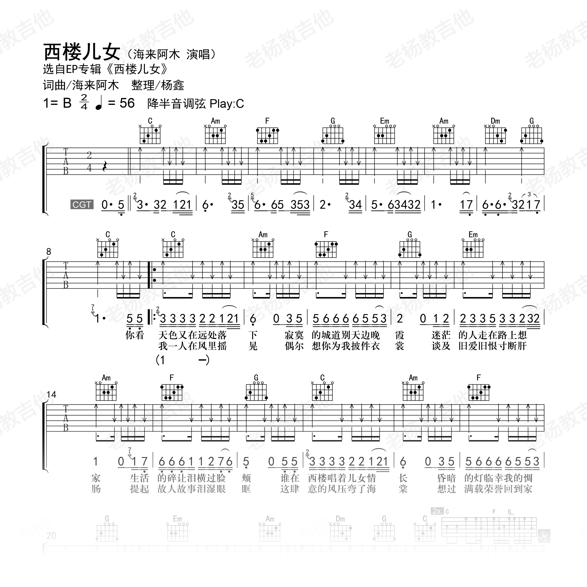 【基本信息】原曲B调,选调C,降半音调弦,每分钟56拍。