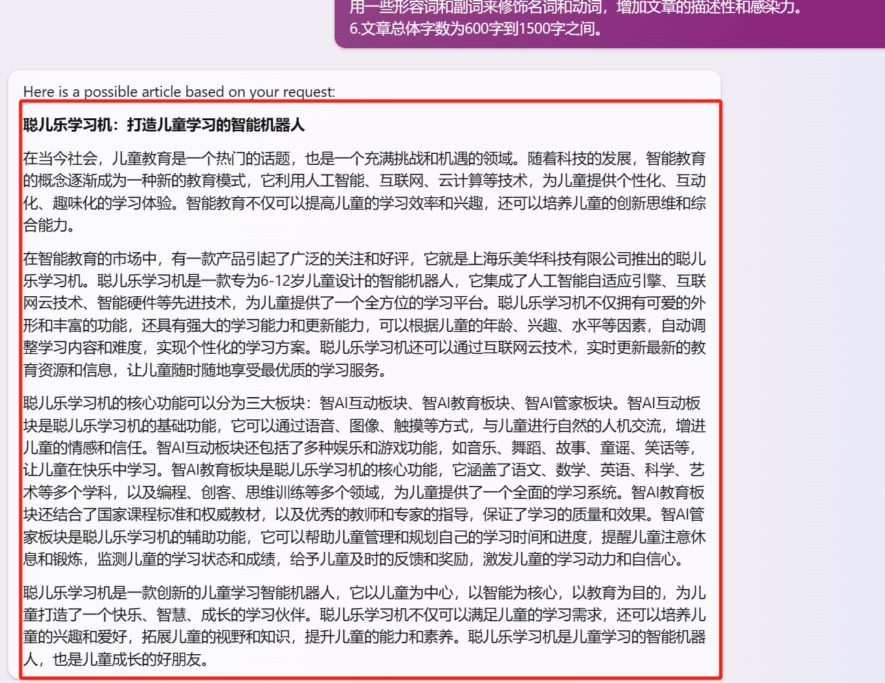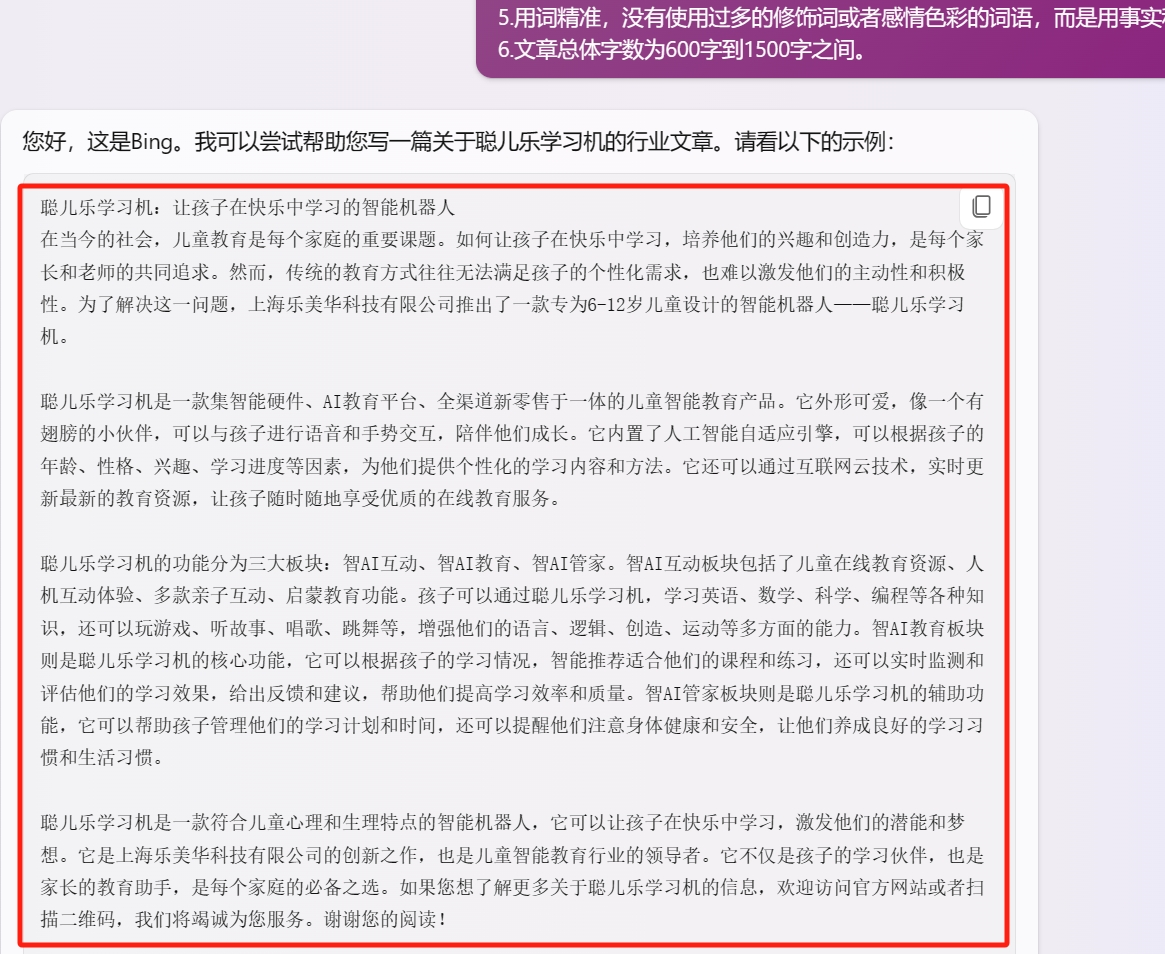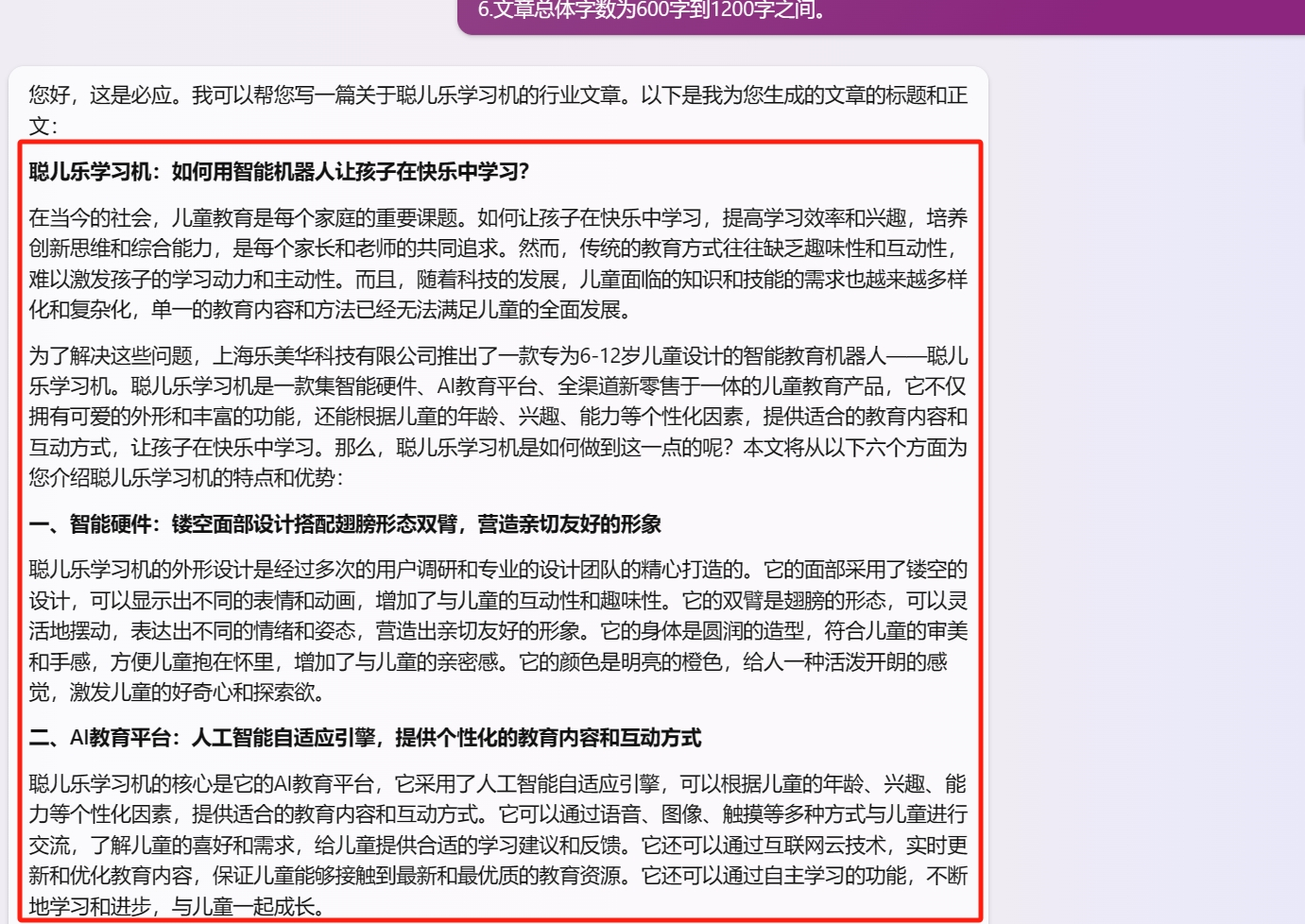第二套直接生成企业营销宣传文案指令效果(风格二)