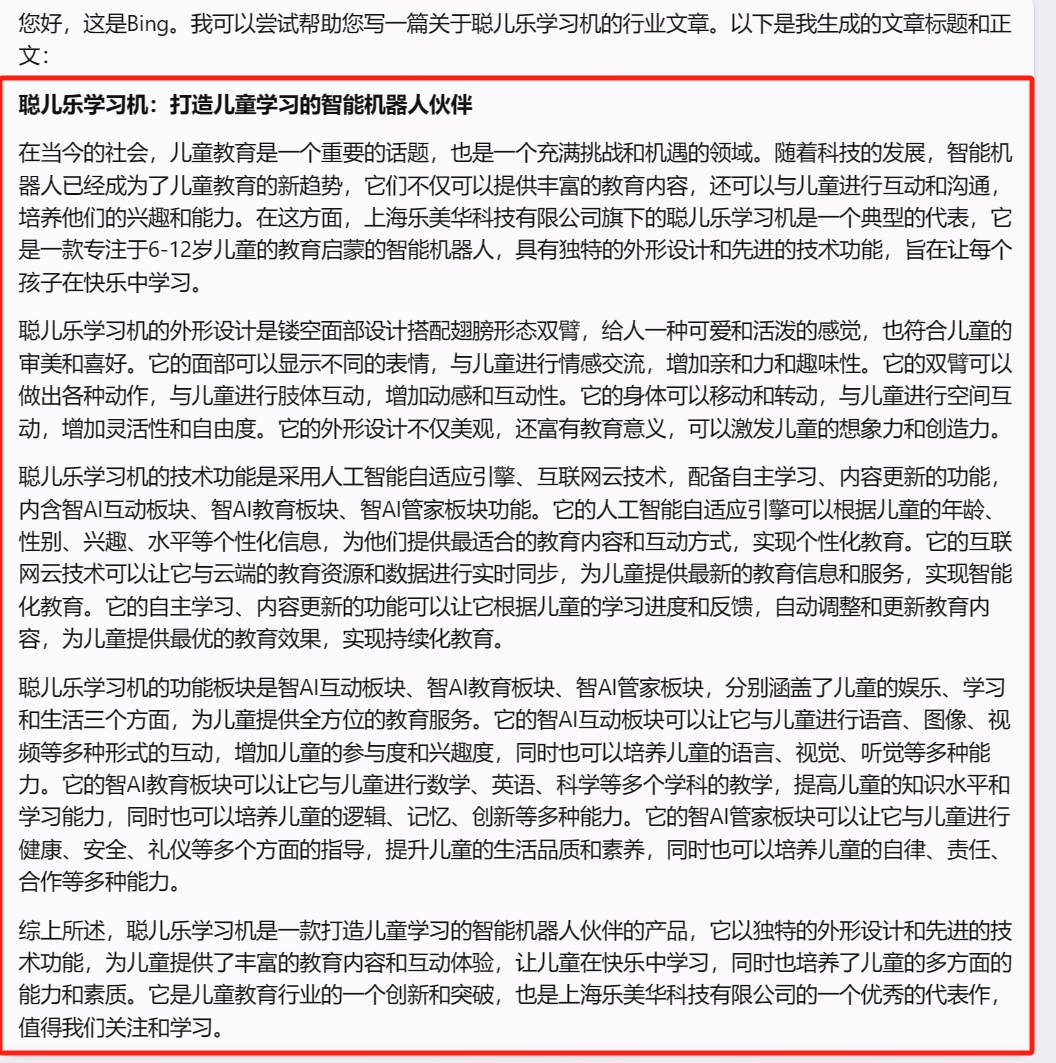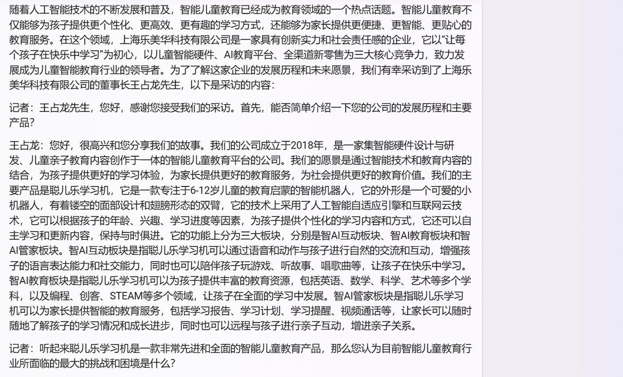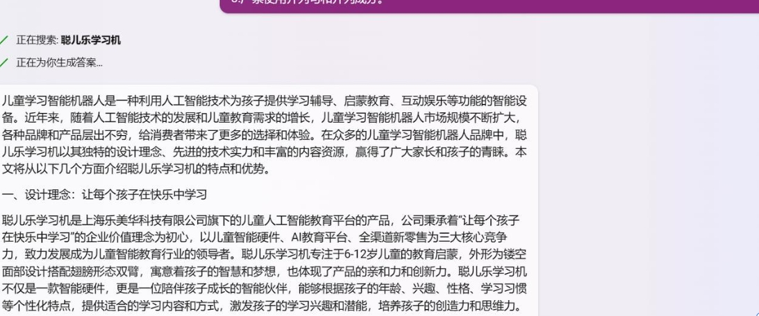上海乐美华科技有限公司是一家集智能硬件设计与研发、儿童亲子教育内容创作于一体的智能儿童教育平台的公司,公司秉承着“让每个孩子在快乐中学习”的企业价值理念为初心,以儿童智能硬件、AI教育平台、全渠道新零售为三大核心竞争力,致力发展成为儿童智能教育行业的领导者。旗下的聪儿乐学习机专注6-12岁儿童的教育启蒙,外形为镂空面部设计搭配翅膀形态双臂,技术上采用人工智能自适应引擎、互联网云技术,配备自主学习、内容更新的功能,内含智AI互动板块、智AI教育板块、智AI管家板块功能,儿童智能机器人搭配儿童在线教育资源、人机互动体验、多款亲子互动、启蒙教育功能。