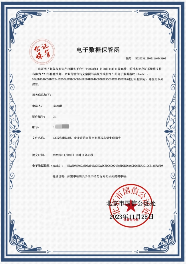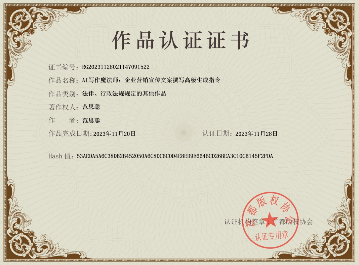 郑重声明:本手册并非市场上大量割韭菜行为的“知识付费”;本手册是一门已经申请了所有版权认证以及在北京国信公证处进行了公证的“新技能、新技术”!之所以是“新技能、新技术”,那是因为企业拥有了本手册不仅能让员工从此在文字工作中游刃有余,哪怕你什么都不懂!同样掌握了这们“新技能、新技术”,公司每年要少花太多聘请文案的工资费用,直接帮企业老板每年省下一大笔钱!!!更为关键的是,根本不用刻意去学习,直接套用指令生成就刻可以了,就是这么简单、粗暴!