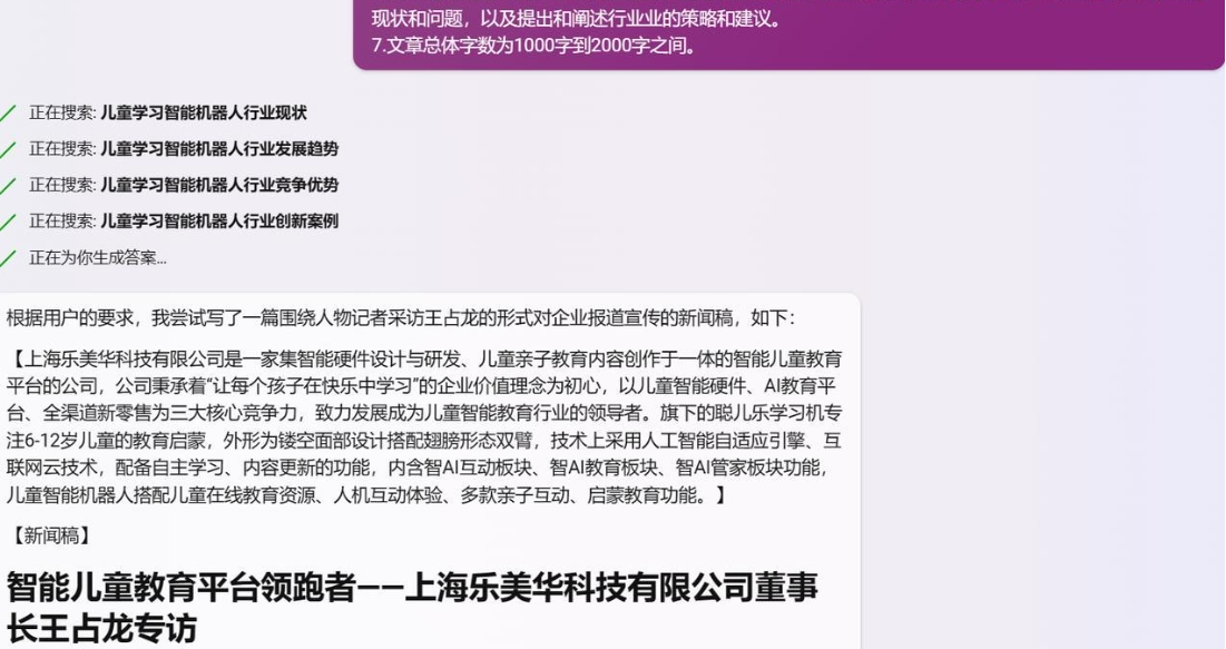 您只需您给一个在网上看到且喜欢的一篇别人写的文章,然后套用指令就能直接生成出和别人文章风格一样的且适合您公司宣传的文章。