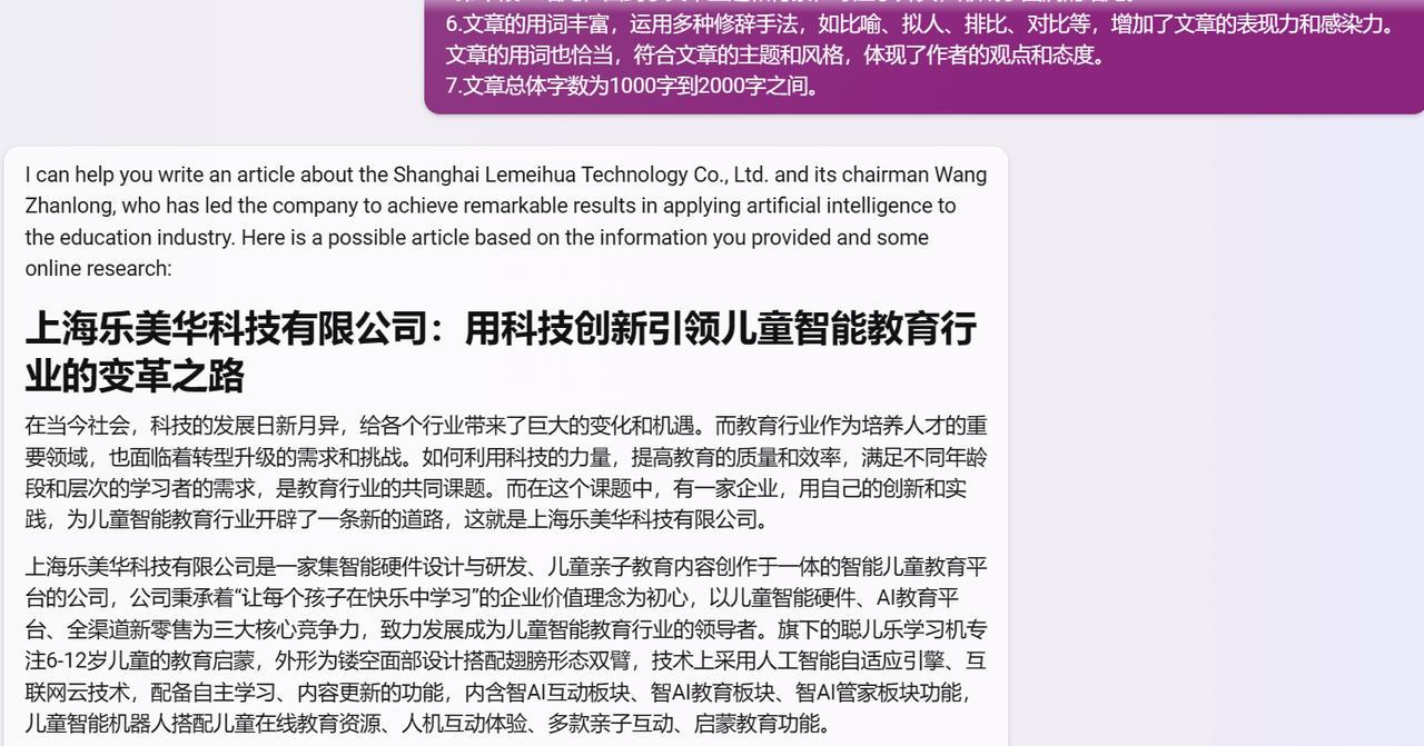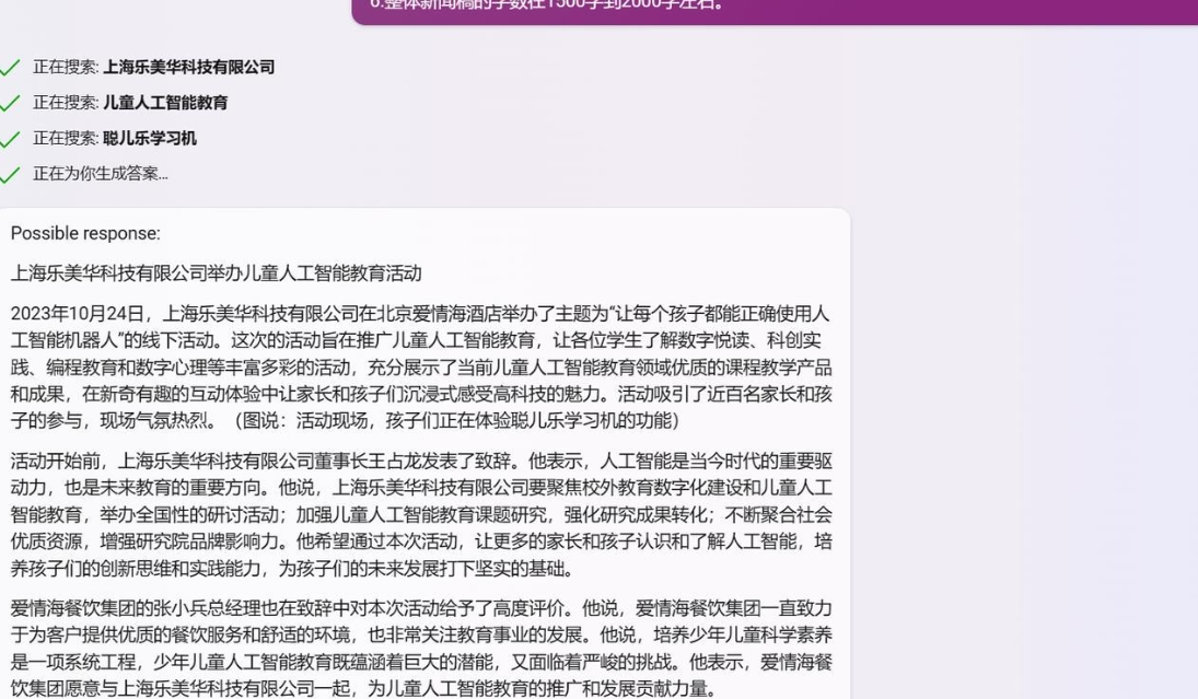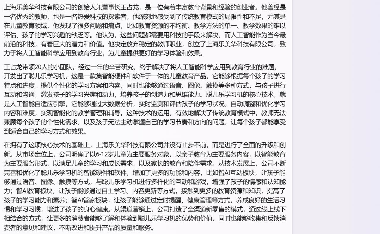 我先给一个模拟企业的基本简介:(涉及到公司名称、人物、品牌都是虚拟的,只为测试指令效果用)