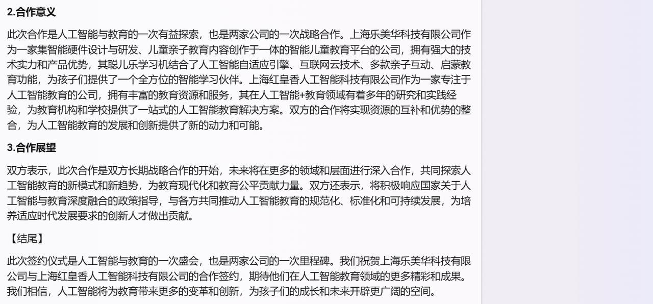 根据上面模拟的企业合作签约生成出来的宣传文章(其中文章字数问题可以根据您的要求增加或者减少)
