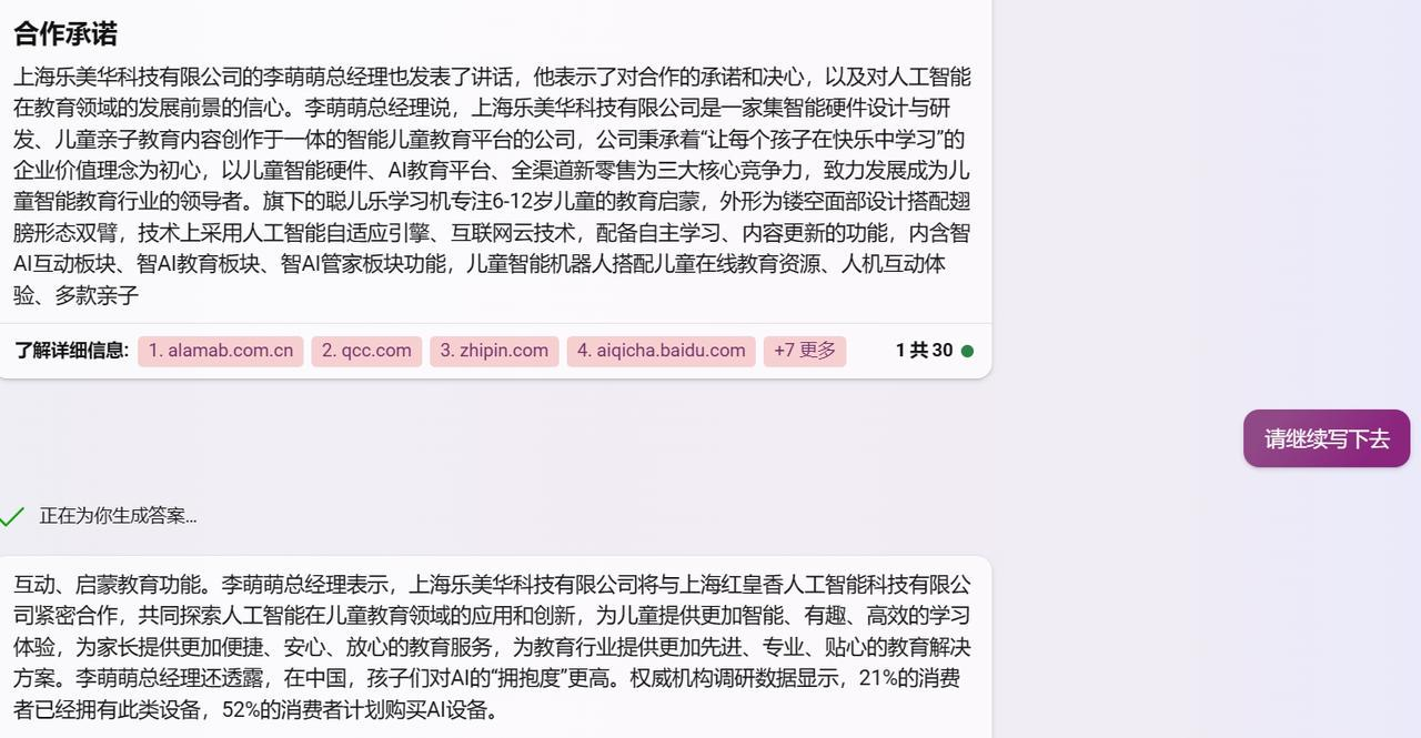 再模拟这个企业和某个企业合作签约(涉及到公司名称、人物、品牌都是虚拟的,只为测试指令效果用)