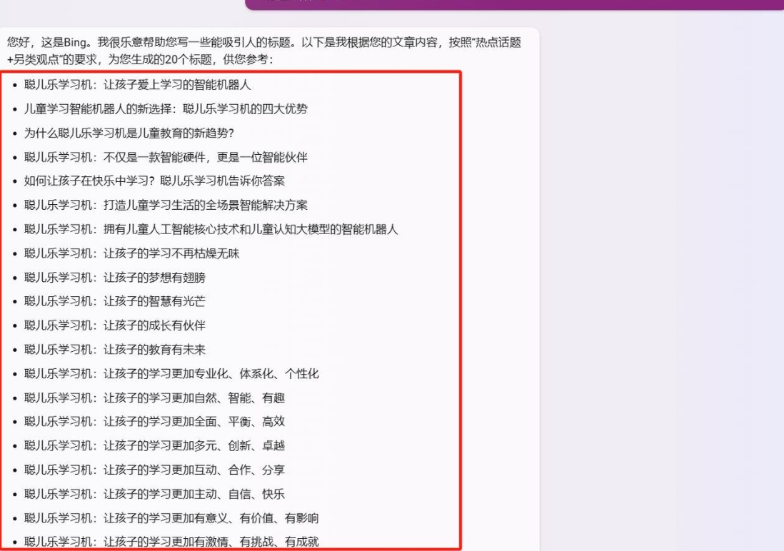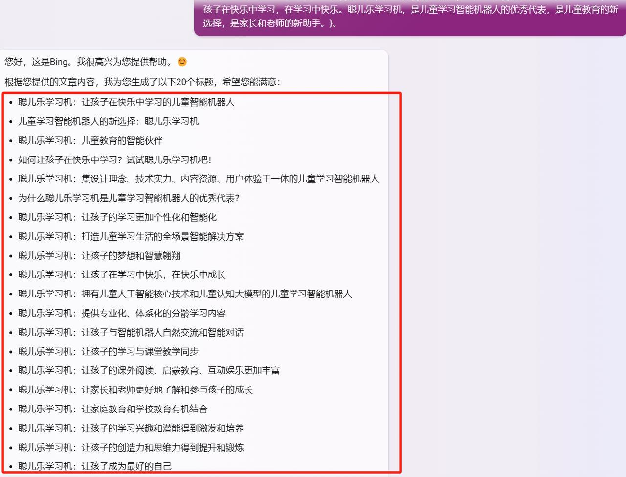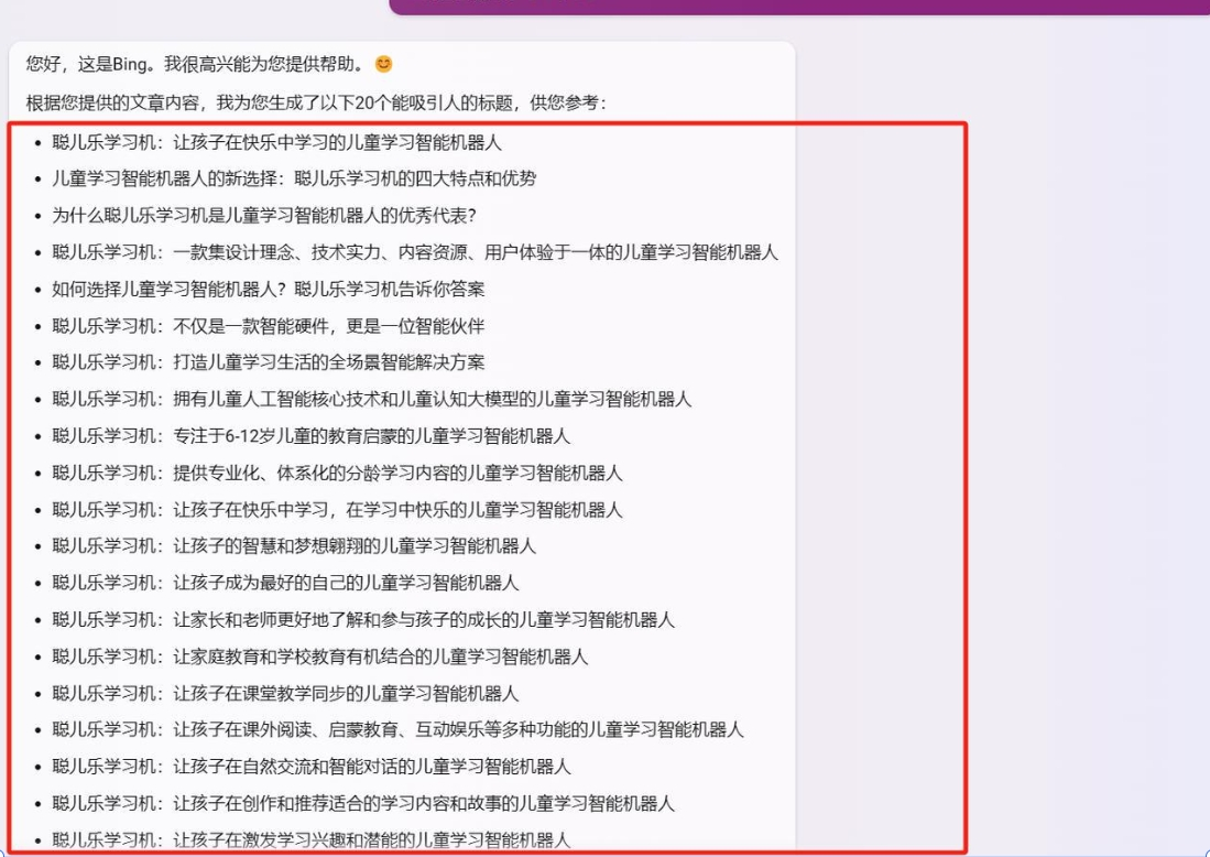 上面的这十四套生成文章指令中,有的指令写了生成标题的要求,有的没有要求写标题。如果上面您生成文章后,对文章自动生成的标题不满意,或者生成的文章没有生成标题,不用担心,您都可以通过以下的指令来自动生成标题。