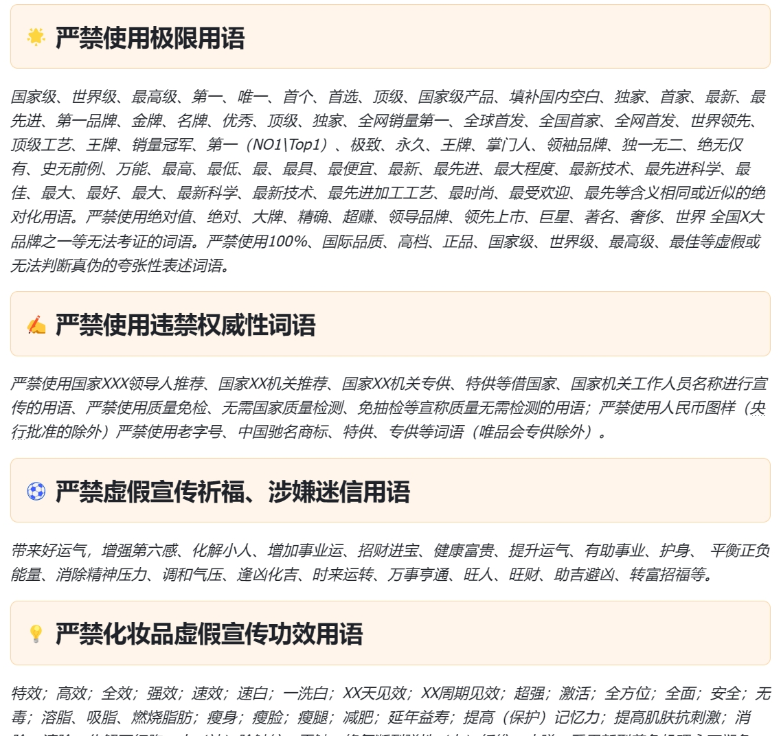 当下对于企业来说,一篇款文章内容必然是不能出现”敏感词“的,这点大家应该都知道。但是,很多人却不知道究竟哪些是敏感词,手册里面公布了一些严禁词,便于大家对生成出来的文章进行筛选!