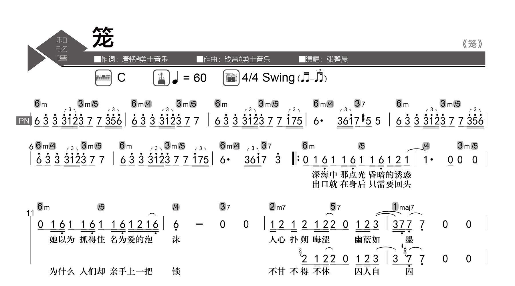 【歌曲信息】Key:C Tempo:4/4 每分钟60拍(Swing 16th)。