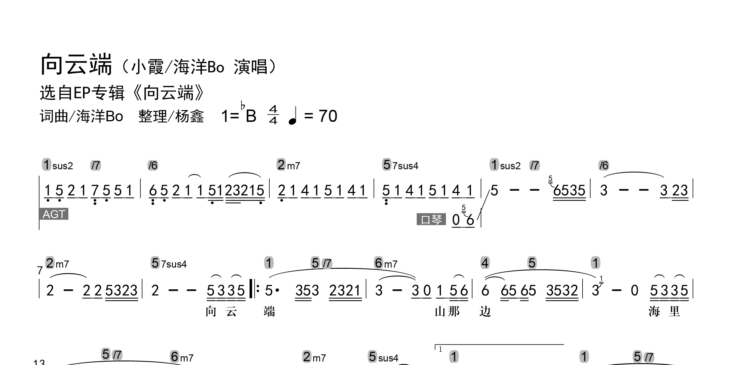 作品简介 【歌曲信息】Key:bB Tempo:4/4 每分钟70拍。【整理信息】按原曲完整整理。【和弦标记】数字级数。【和弦难度】大三和弦,转位和弦/Slash和弦,小七和弦,挂留和弦,转位/Slash和弦。乐谱样式>>>>>> 创作时间: