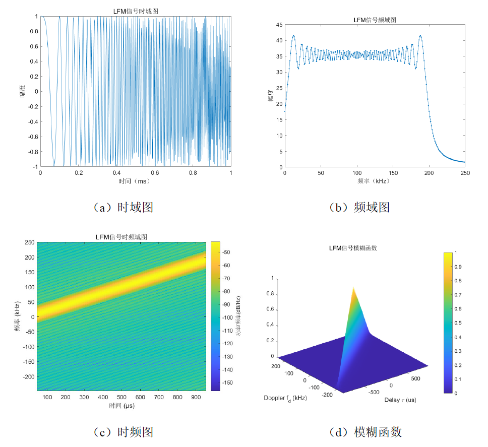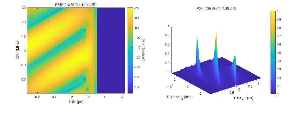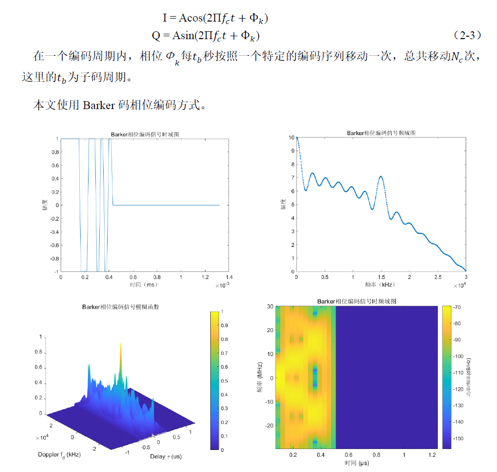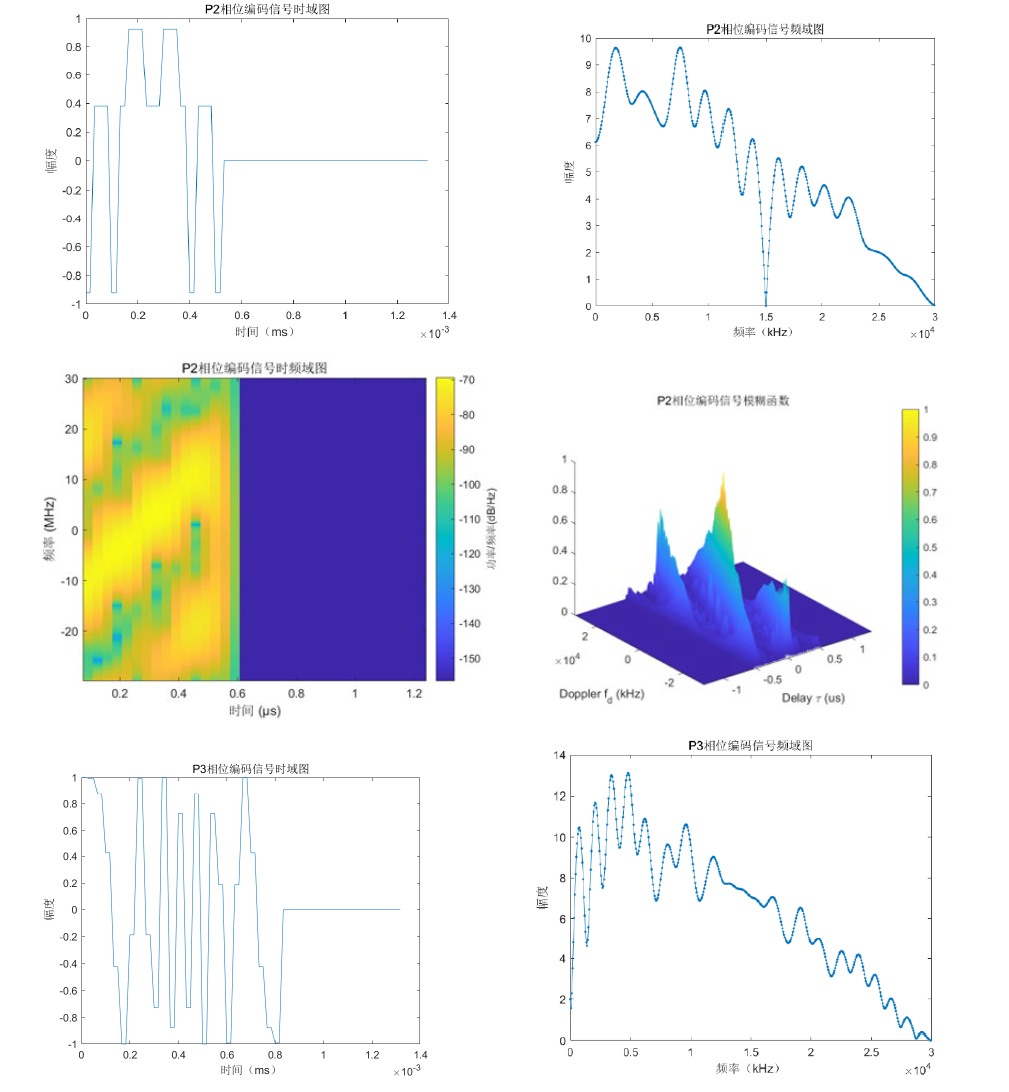 LFM、Barker、Frank、P1-P4低截获信号时频图、模糊函数图、自相关图MATLAB程序
