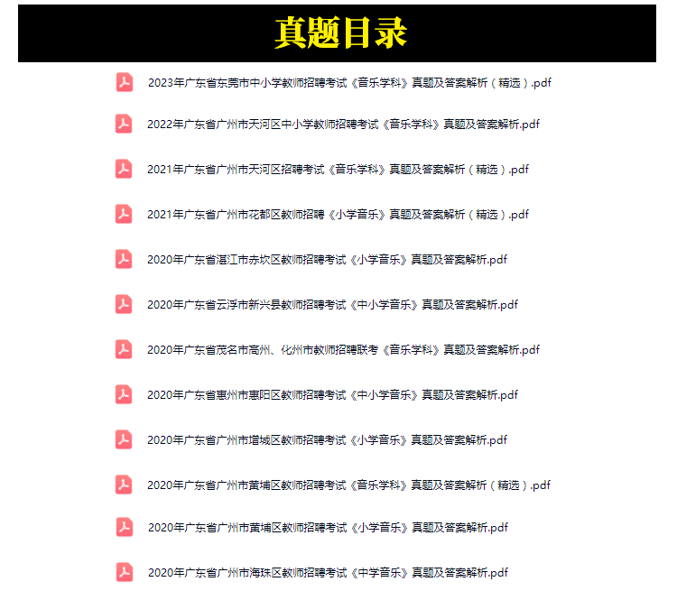 2020年-2023年广东省教师招聘考试音乐学科笔试历年真题12套