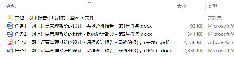 整个开发过程,需要提交3份文档,分别于每周结束后,提交:需求分析报告、系统设计报告和课程设计报告。