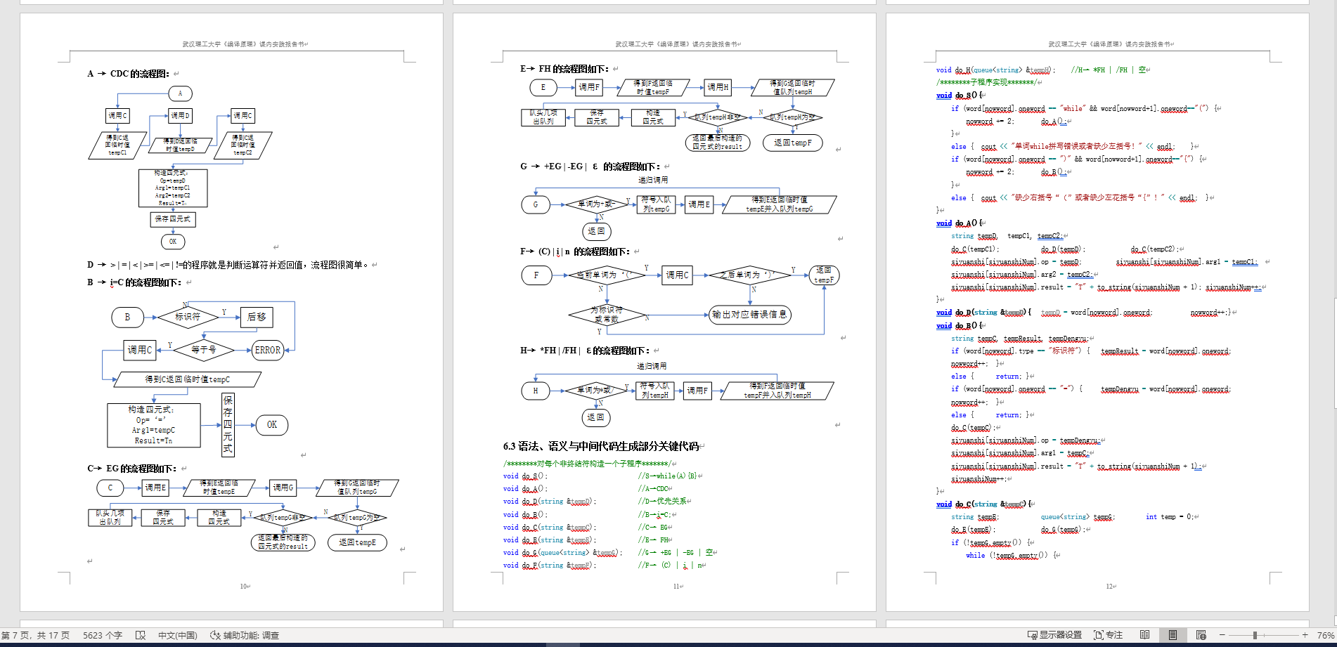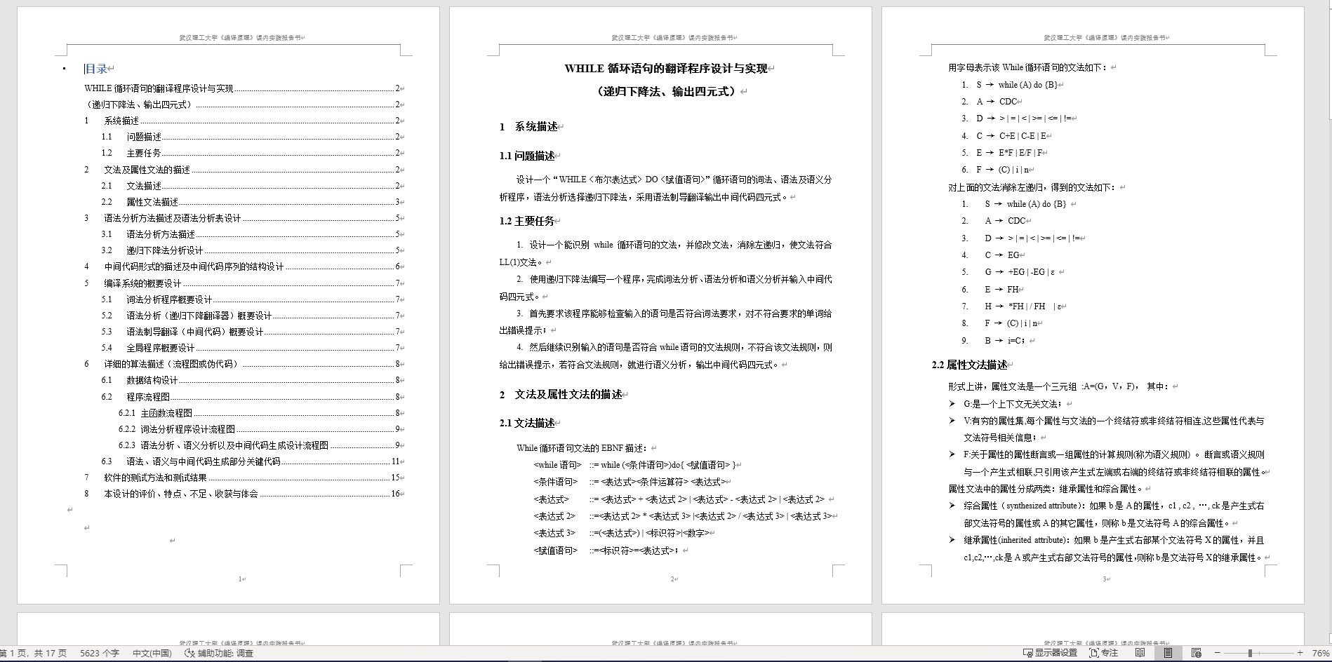 本资料主要包括此课程的实验源码和课内实践报告,选题为《WHILE循环语句,递归下降法,输出四元式》