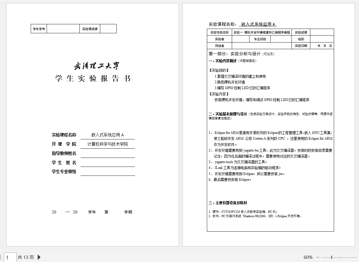 本课程主要学习嵌入式系统的概论,以及嵌入式系统的设计方法、ARM体系结构与指令集、存储系统、系统总线、IO接口电路等。