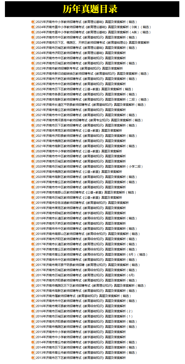 2013年-2025年济南市中小学教师招聘考试笔试历年真题66套