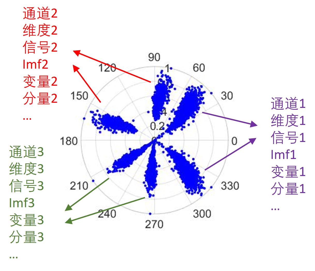 对称点模式(Symmetrized Dot Pattern,SDP)算法可将复杂时间序列以散点的形式清晰映射在极坐标图中,可以使原始时域信号通过图形化的方式提高可视化能力。因为极坐标图像的特殊性,多元、多通道、多传感器信号信息可通过SDP方法融合在有限区域中。该作品适用于多元、多通道、多传感器的信号,可结合VMD,EMD等分解技术。单一时间序列的SDP请移步:https://mbd.pub/o/bread/ZJqWmJ9r。可结合(CNN,Resnet,VGG,transformer)使用