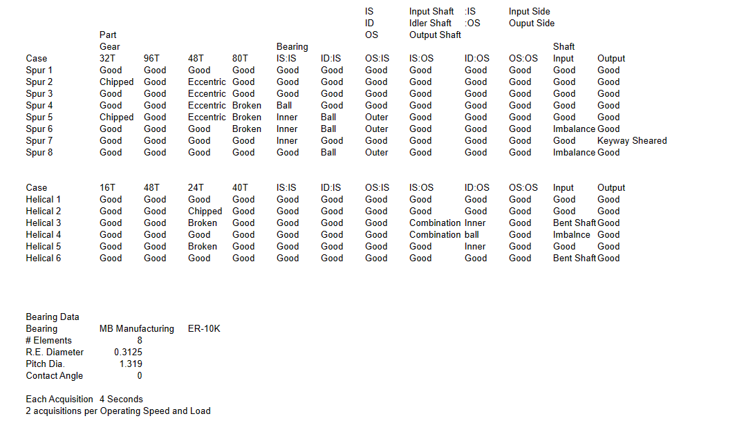 该数据集包含5种不同转速下直齿轮和斜轮齿两种不同类型的齿轮发生故障时的16种故障数据,以1800rpm下的10种状态下的齿轮箱数据为例,如下表。