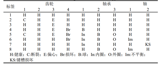 齿轮箱包含8种复合故障,故障详情如下表所示。