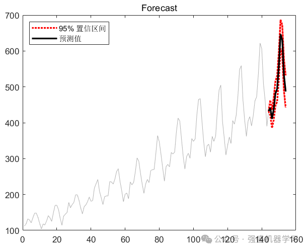 [forData,YMSE] = forecast(EstMdl,step,data); %matlab2018及以下版本写为Predict_Y = forecast(EstMdl,step,'Y0',Y); matlab2019写为Predict_Y = forecast(EstMdl,step,Y);