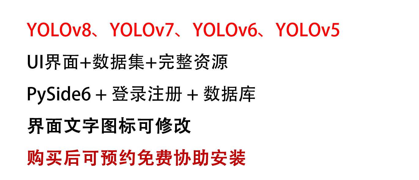 这个合集中包含YOLOv8、YOLOv7、YOLOv6、YOLOv5的完整项目的资源文件,详细文件可点击进入合集中包含的作品中有详细的介绍哦!