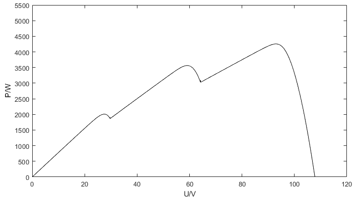 多峰值 MPPT 技术的产生是由于光伏发电系统的失配问题导致的。当光伏发 电系统处于失配状态时,其 P-U 输出特性曲线会变成一条多峰值的曲线,导致传统的单峰值 MPPT 控制算法跟踪到的最大功率点极有可能只是局部的极大值点, 并不是全局的极大值点,即造成算法失效;从而致使光伏发电系统的输出功率降低, 发电效率下降。