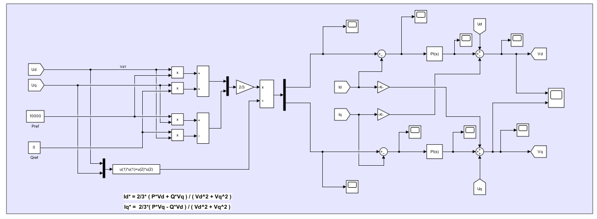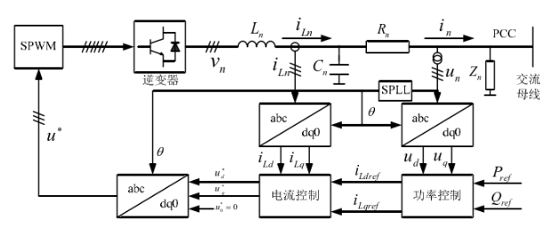 并网模式下且公共电网供应正常时,因为公共电网给定了电 压和频率的参考值,所有的逆变器可以使用PQ控制方式。