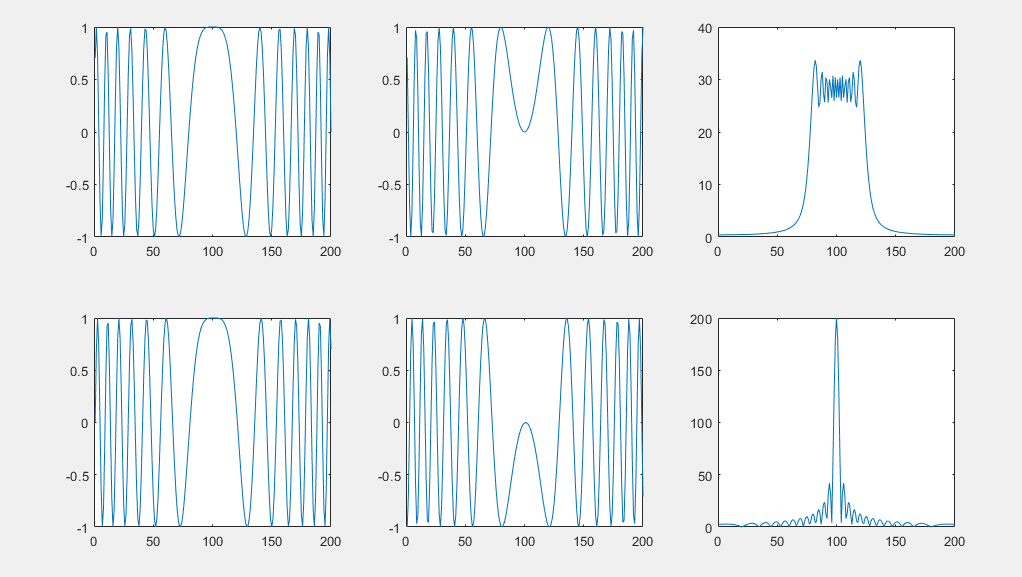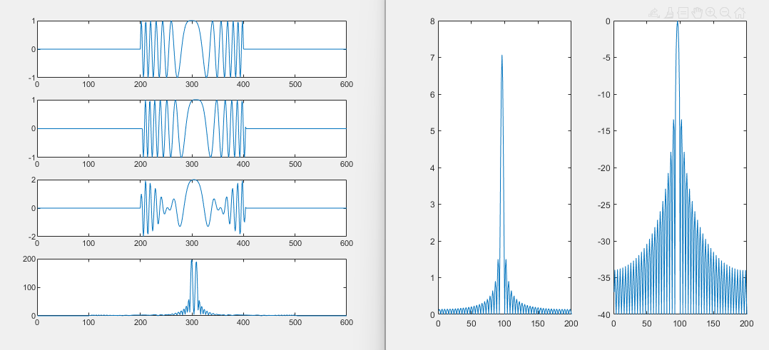 subplot(2,3,6); plot(abs(mf_out(Nr/2+1:Nr*3/2)));
