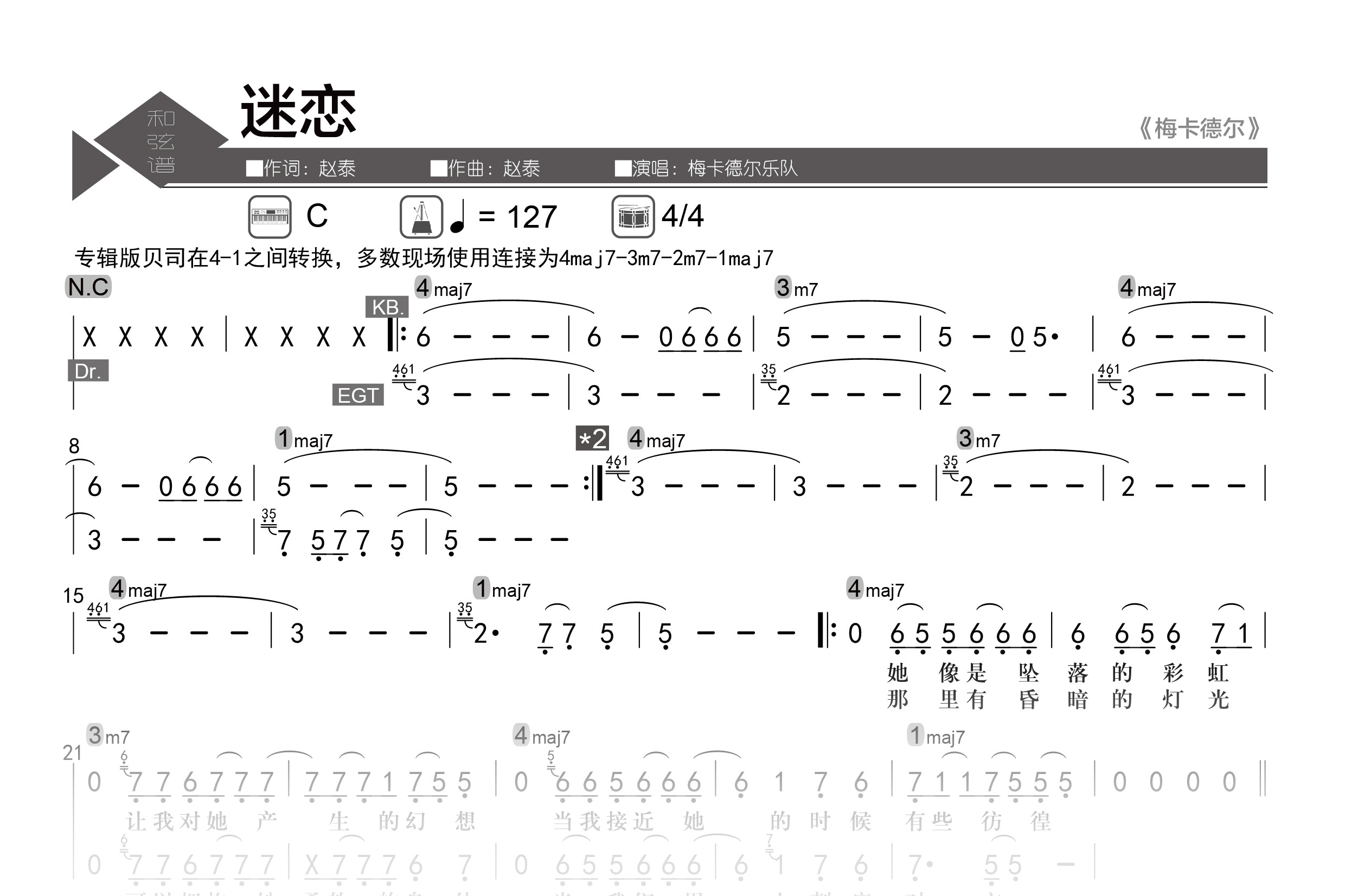 【简谱+和弦】梅卡德尔乐队《迷恋》钢琴/吉他即兴用谱