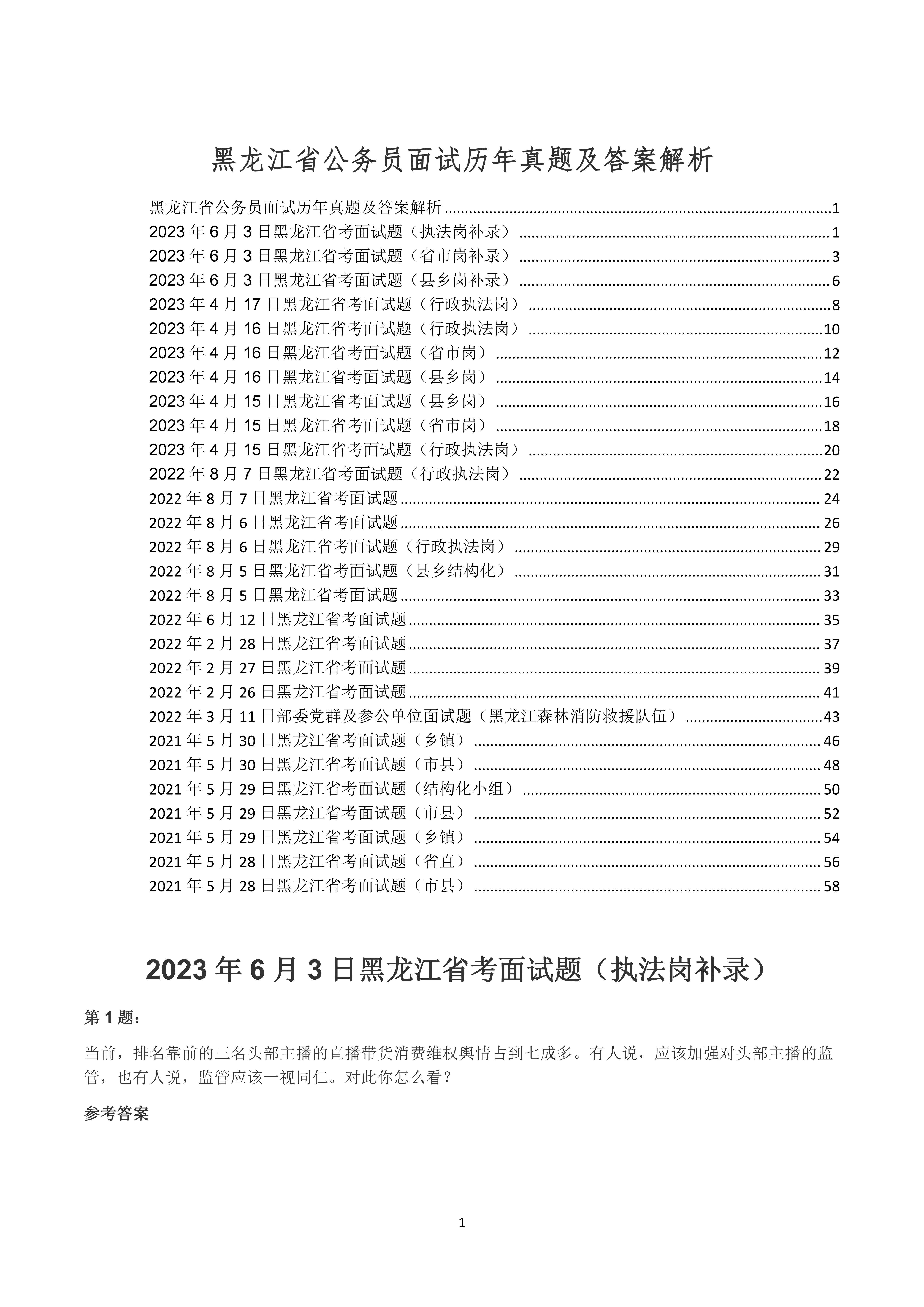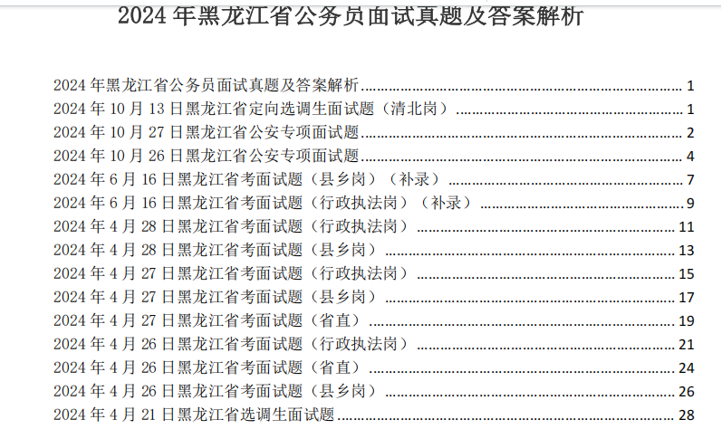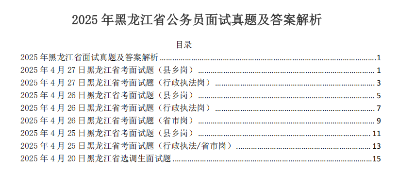 目录,黑龙江省考面试真题及解析,已经更新到2025年。