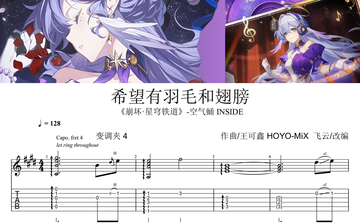 {指弹吉他谱}希望有羽毛和翅膀-《崩坏·星穹铁道》-空气蛹 INSIDE 知更鸟歌曲改编