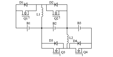 Buck-Boost型双向均衡电路如下图所 示,将 由 开 关 管、续流二极管和储能电感组成的均衡模块放置在相邻的 两节单体电池之间,由主控板发出的脉冲信号的高低电平 来控制开关管的开启与关断,让储能电感实现相邻两节单 体电池间的能量 转 移。Buck-Boost型 双 向 主 动 均 衡 电 路的优点是容易控制、低损耗、均衡效率高。